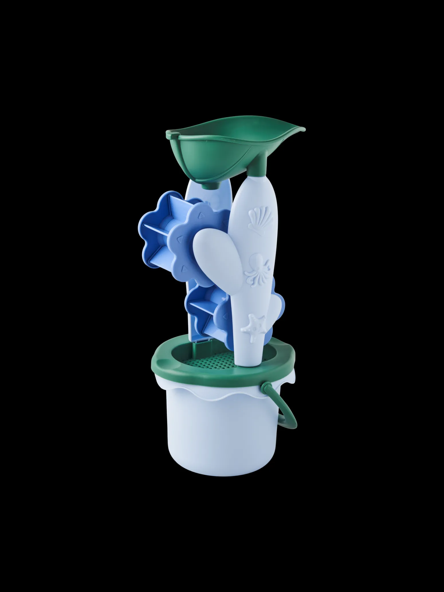 Die Spielzeugsandmühle der Schwestern besteht aus Polypropylen und ist 31 cm hoch.