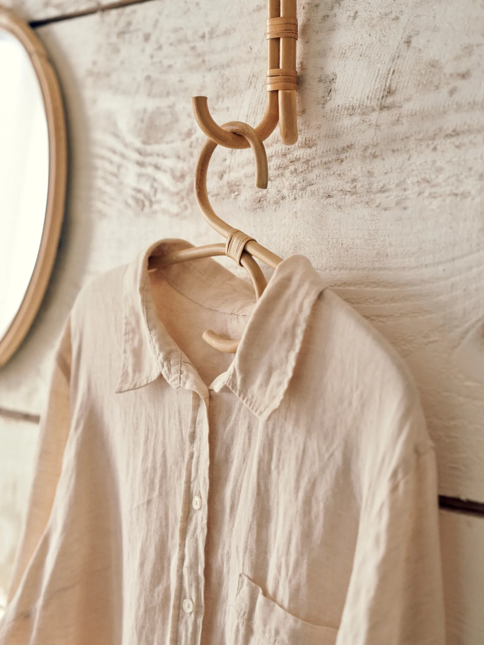 Der Kleiderbügel der Schwestern besteht aus Rattan und ist eine schöne Ergänzung für jede Kleiderstange.