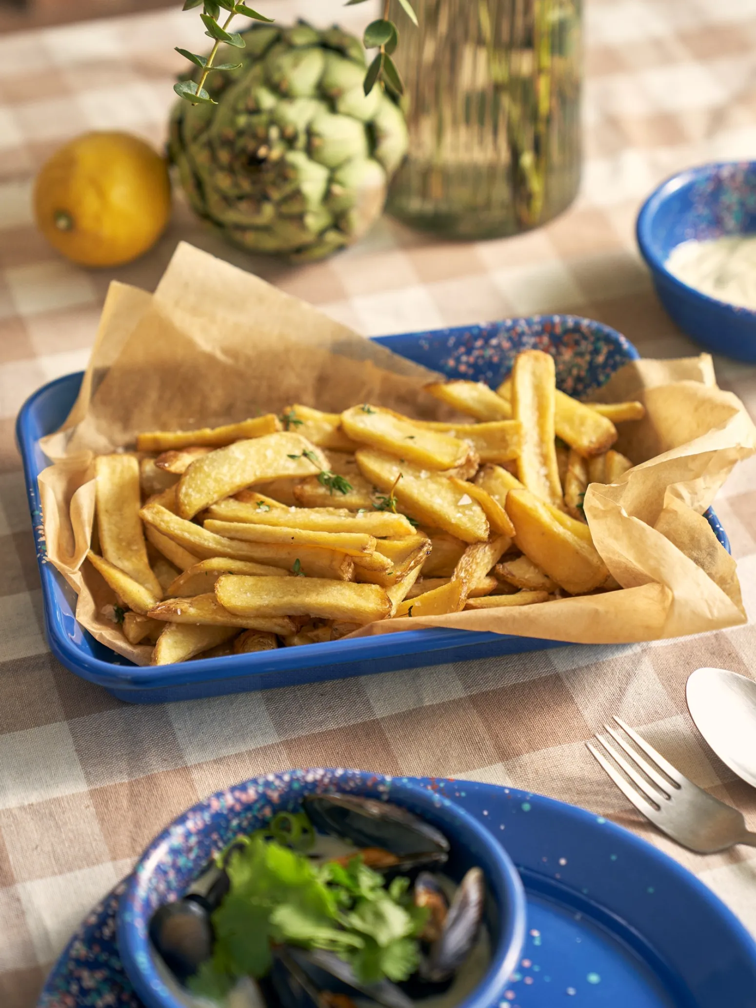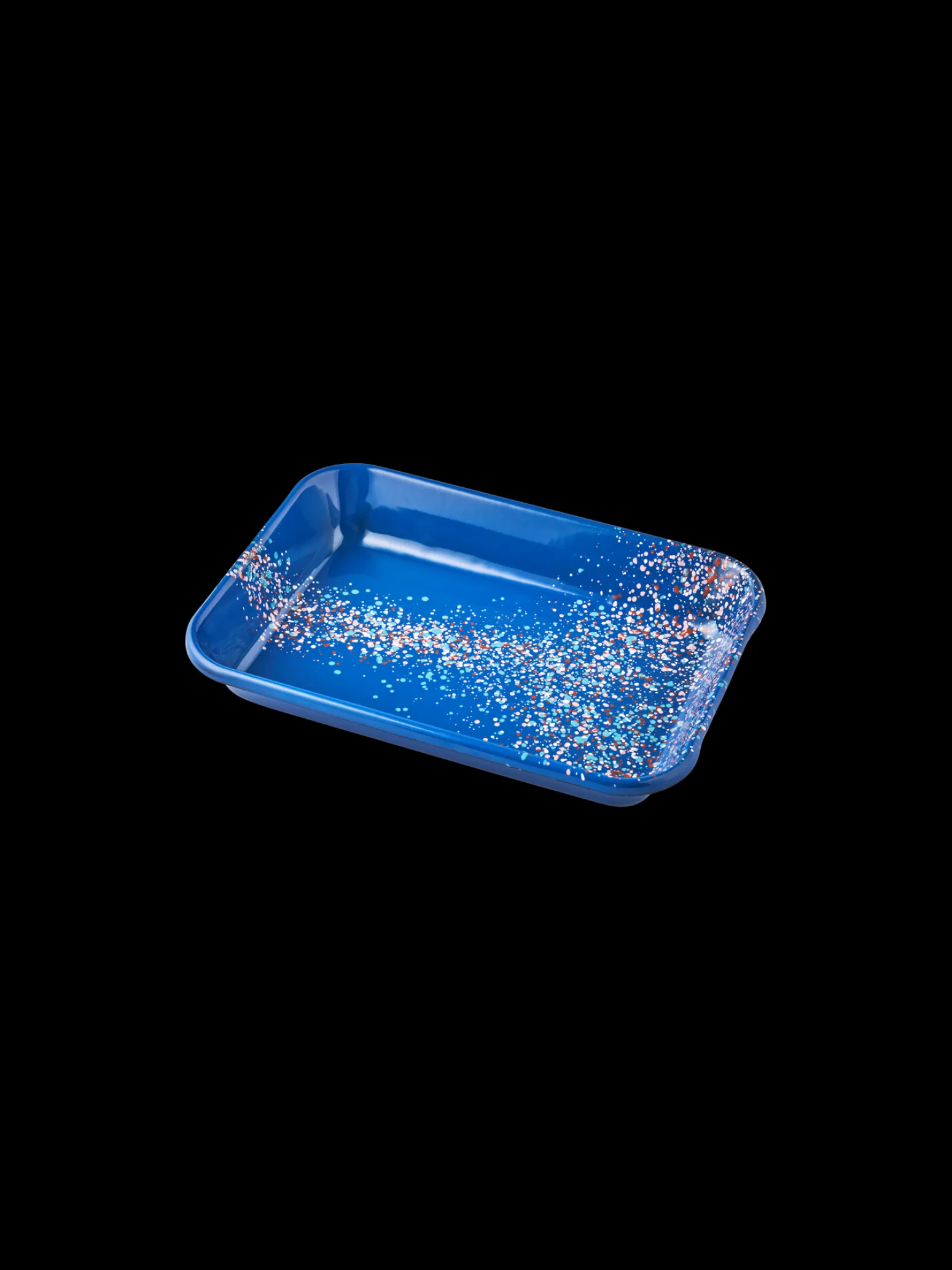 Die Schwestern weisen freundlich darauf hin, dass dieses Produkt nur online erhältlich ist.Das Flow Fest Emaille-Tablett von Kapka misst 27 x 19,5 x 4 cm. Es ist spülmaschinenfest.„Das sieht fast aus wie Konfetti“, ruft der Neffe, während er sich vorbeugt, um eine Handvoll Erdbeeren von dem Tablett zu pflücken, das Anna ausgelegt hat. Die Schwestern haben die Kinder zu einem Picknick in ihren Lieblingspark eingeladen. Der Picknickkorb ist prall gefüllt mit Leckereien, erfrischenden Getränken und praktischem Geschirr.„Diese Art von Geschirr ist unglaublich nützlich für Picknicks, da es leicht und robust ist“, erklärt Clara. „In der Tat, liebe Schwester. Aber es sieht auch wunderbar hübsch auf einem schön gedeckten Tisch zu Hause aus“, fügt Anna mit einem Lächeln hinzu.