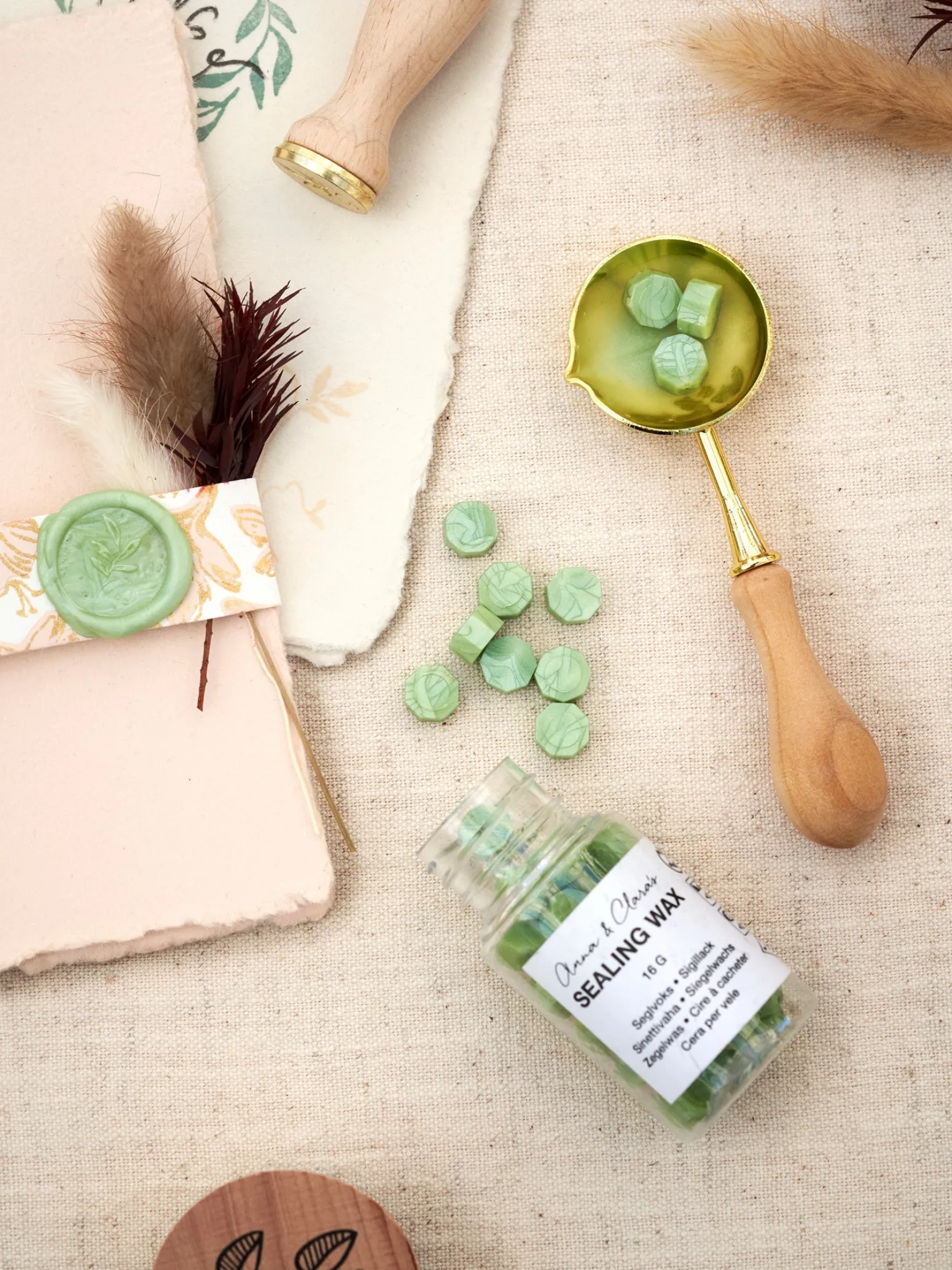 Der Wachslöffel der Schwestern besteht aus 100 % FSC®-zertifiziertem Kiefernholz und Metall und eignet sich perfekt für die Arbeit mit dem Siegelwachs der Schwestern.