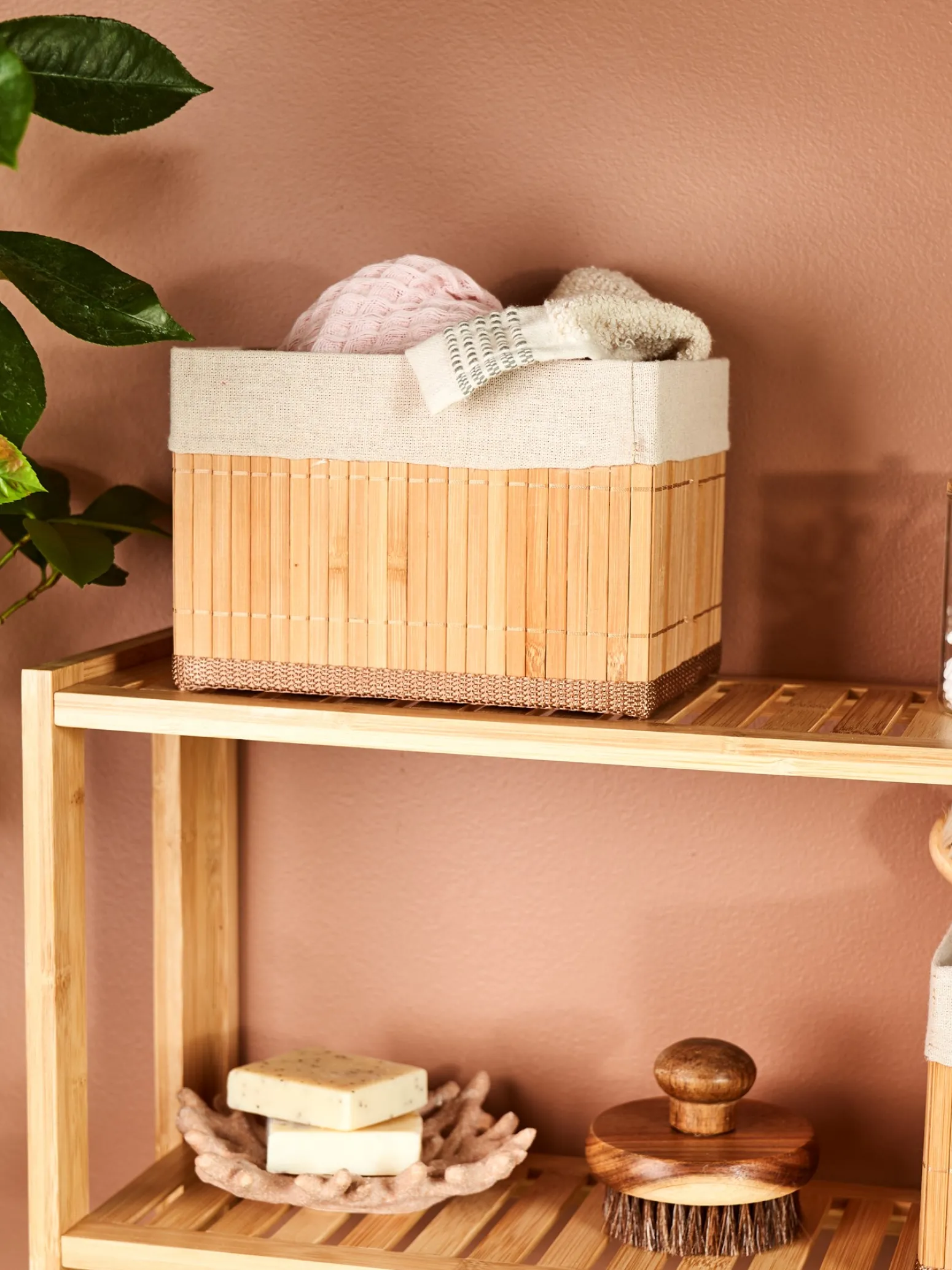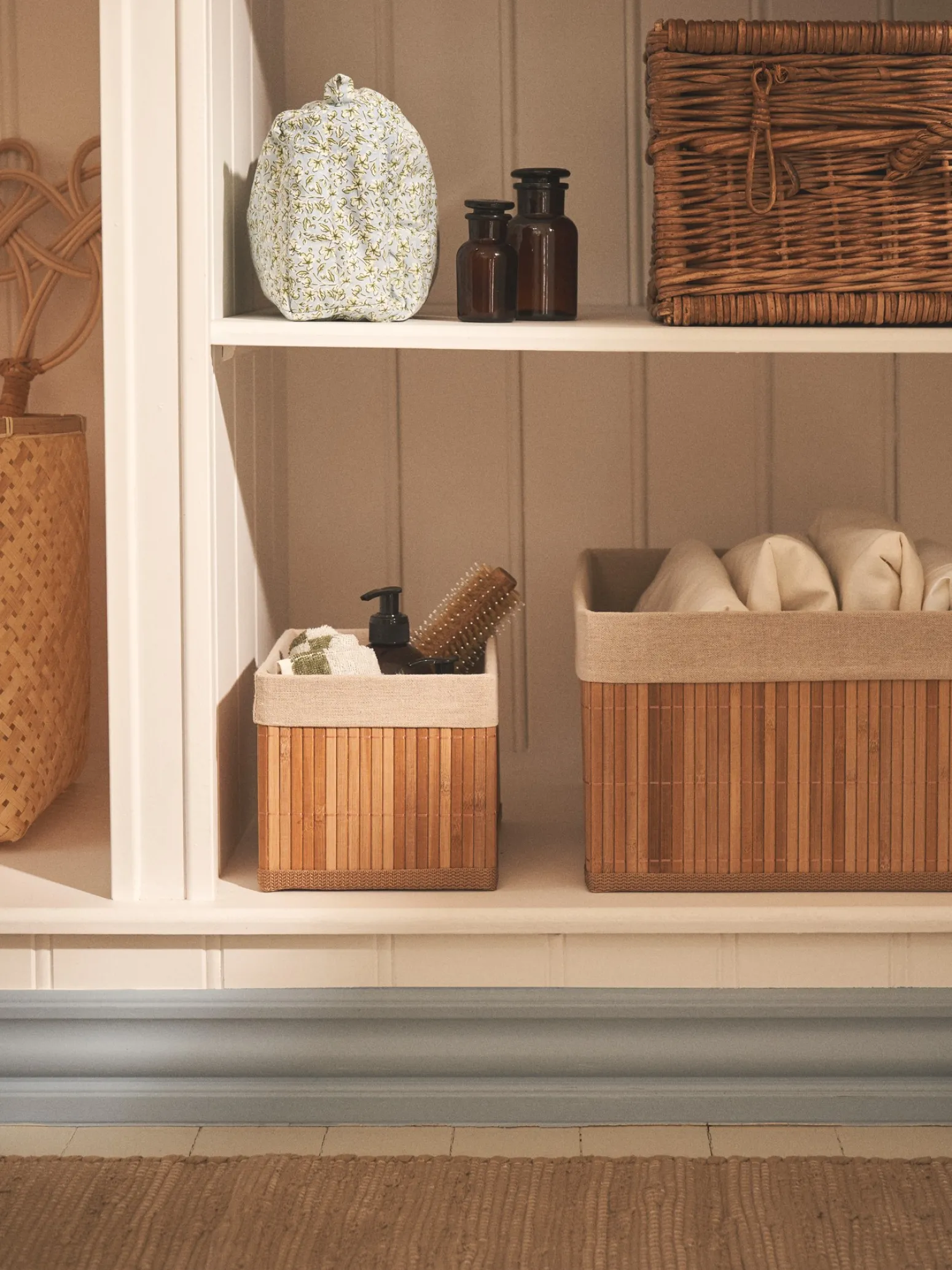 Der Aufbewahrungskorb der Schwestern besteht aus 100 % FSC®-zertifiziertem Bambus und hat ein Futter aus 60 % Polyester und 40 % Baumwolle. Er misst 21 x 14 x 14 cm.Da es sich bei Bambus um ein natürliches Material handelt, weisen die Schwestern darauf hin, dass das Produkt in Farbe und Muster leicht variieren kann.