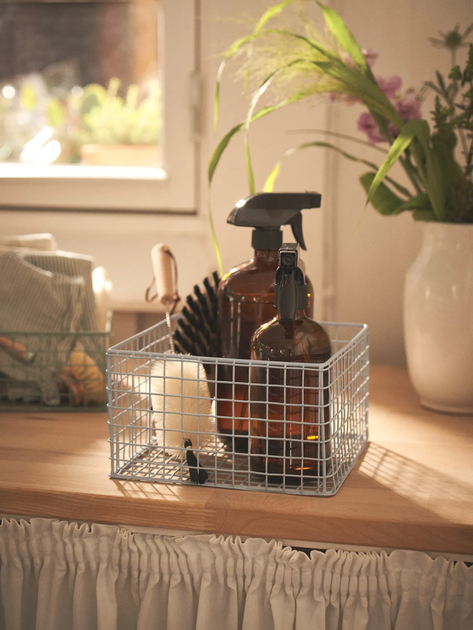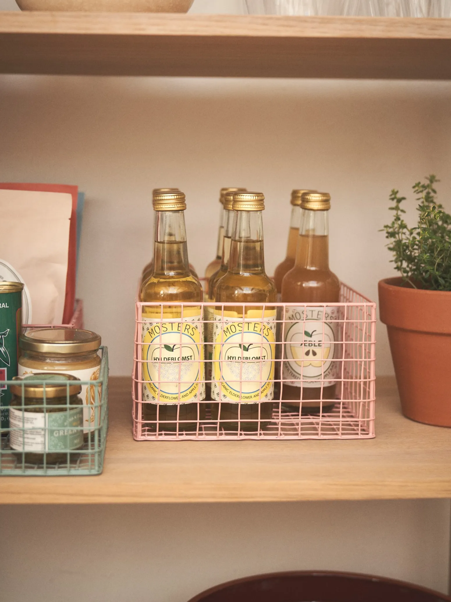 Der Drahtkorb aus Metall der Schwestern ist eine schöne Aufbewahrungslösung für zu Hause.