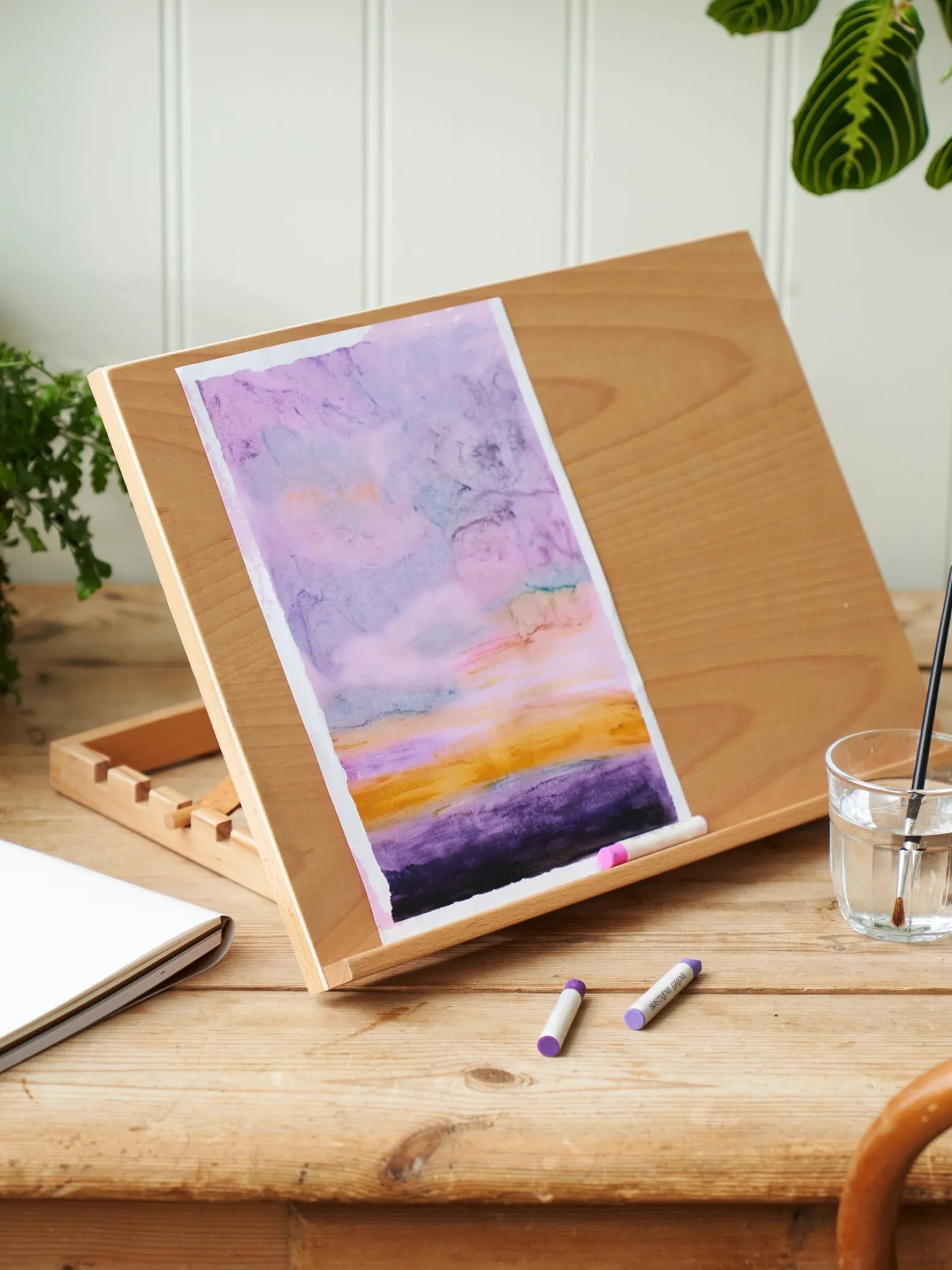 Die Staffelei der Schwestern besteht aus 100 % FSC®-zertifiziertem Buchen- und Pappelholz. Sie ist verstellbar und der perfekte Ständer beim Malen an einem Tisch. Sie misst 44 x 32,5 cm.