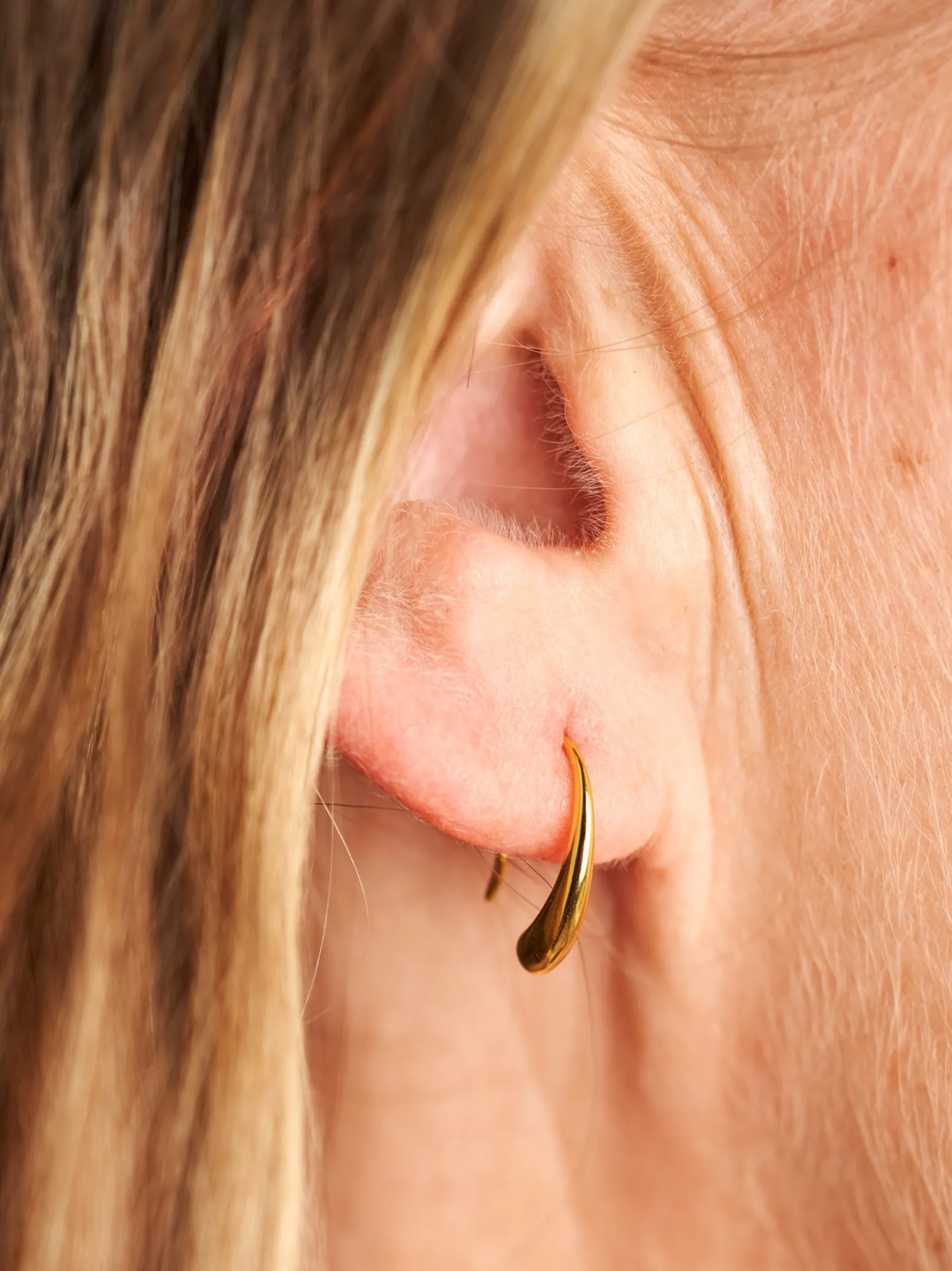 Die Schwestern weisen freundlich darauf hin, dass dieses Produkt nur online erhältlich ist. Die Amy-Ohrringe sind aus 925er Sterlingsilber gefertigt und mit 18 Karat Gold überzogen. Die beiden Ohrringe messen 8 x 3 x 14 mm und werden in einer schönen, kleinen Schmuckschatulle geliefert.„Die Amy-Ohrringe haben eine glatte, runde Form, die den klassischen Creolen einen neuen Twist verleiht“, sagt Clara mit einem Lächeln. „Eine ideale Ergänzung für Ihre Schmuckschatulle.“Anna und Clara weisen darauf hin, dass Sie den direkten Kontakt mit Feuchtigkeit und Flüssigkeiten vermeiden sollten, um eine bessere Haltbarkeit der Vergoldung zu gewährleisten.