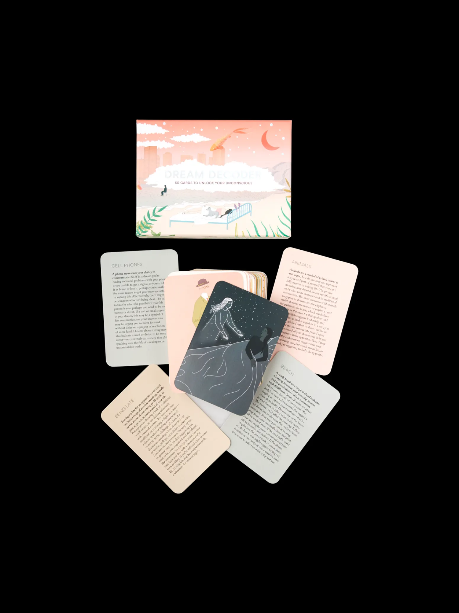 Die Schwestern weisen freundlich darauf hin, dass dieses Produkt nur online erhältlich ist.Dieses praktische Kartenpaket bietet Ihnen 60 Erklärungen der häufigsten Träume und hilft Ihnen, zu entschlüsseln, was Ihr Unterbewusstsein Ihnen mitzuteilen versucht. Wenn Sie Ihre Träume verstehen, verstehen Sie vielleicht auch sich selbst ein bisschen besser. Das Kartenpaket enthält Tipps zur Verwendung der Karten und optionale Spiele für eine oder mehrere Personen.„Was könnte das bedeuten?“ fragt sich Anna, als sie nach einer verträumten Nacht aufwacht. „Vielleicht versucht mein Unterbewusstsein, mir ein Zeichen zu geben?“