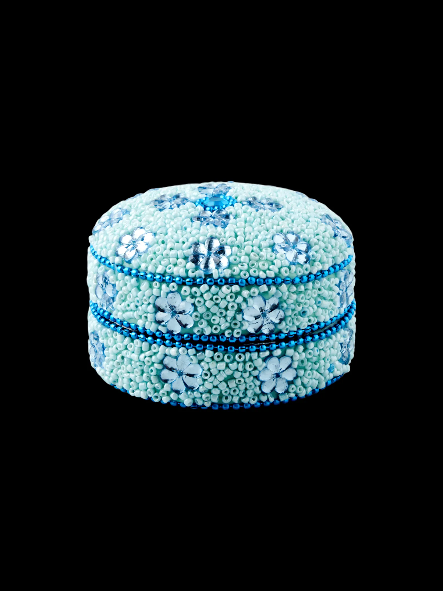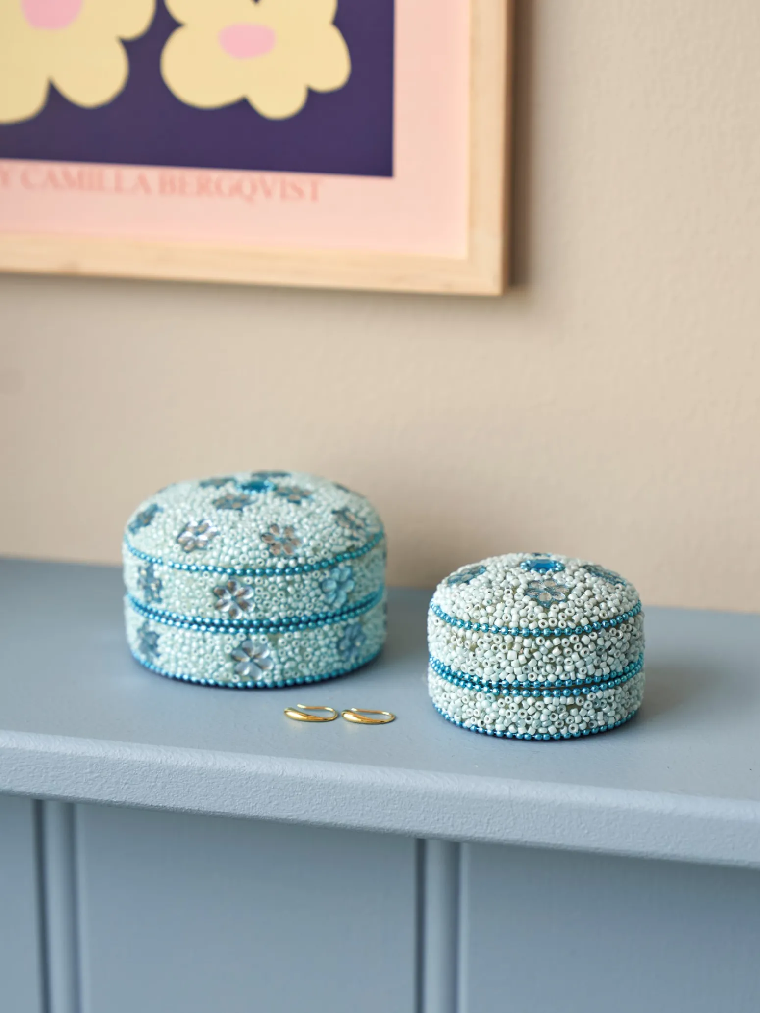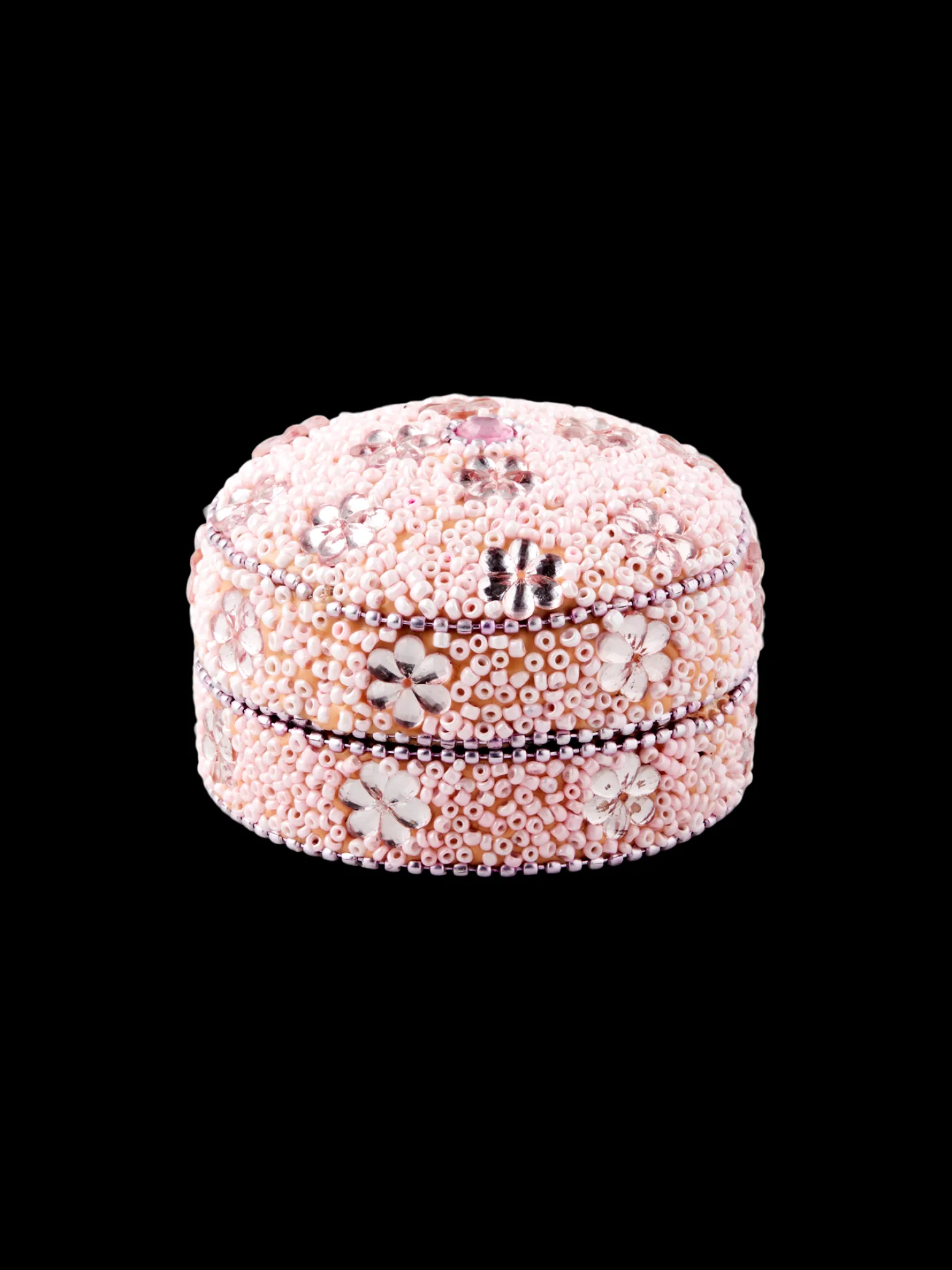Das Schmuckkästchen der Schwestern ist aus Aluminium gefertigt misst Ø7 x 4,7 cm.