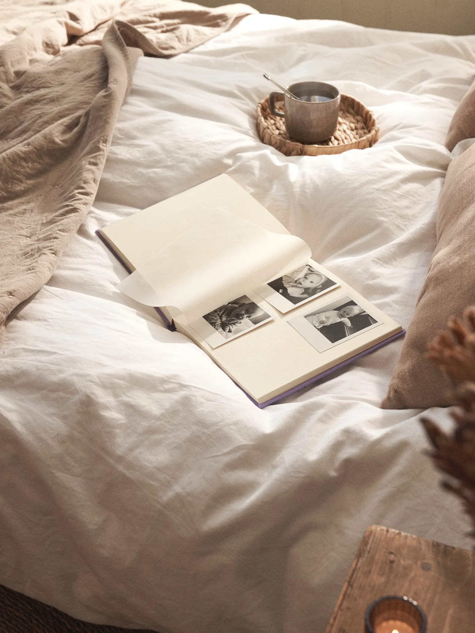 Das Fotoalbum von Semikolon hat Seiten aus weißem Efalin-Papier und ist mit feinem Buchleinen gebunden. Es misst 24 x 23 cm und hat 60 Seiten à 230 g/m². Zwischen den Seiten befinden sich Pergamin-Bögen, um Ihre Fotos zu beschützen.