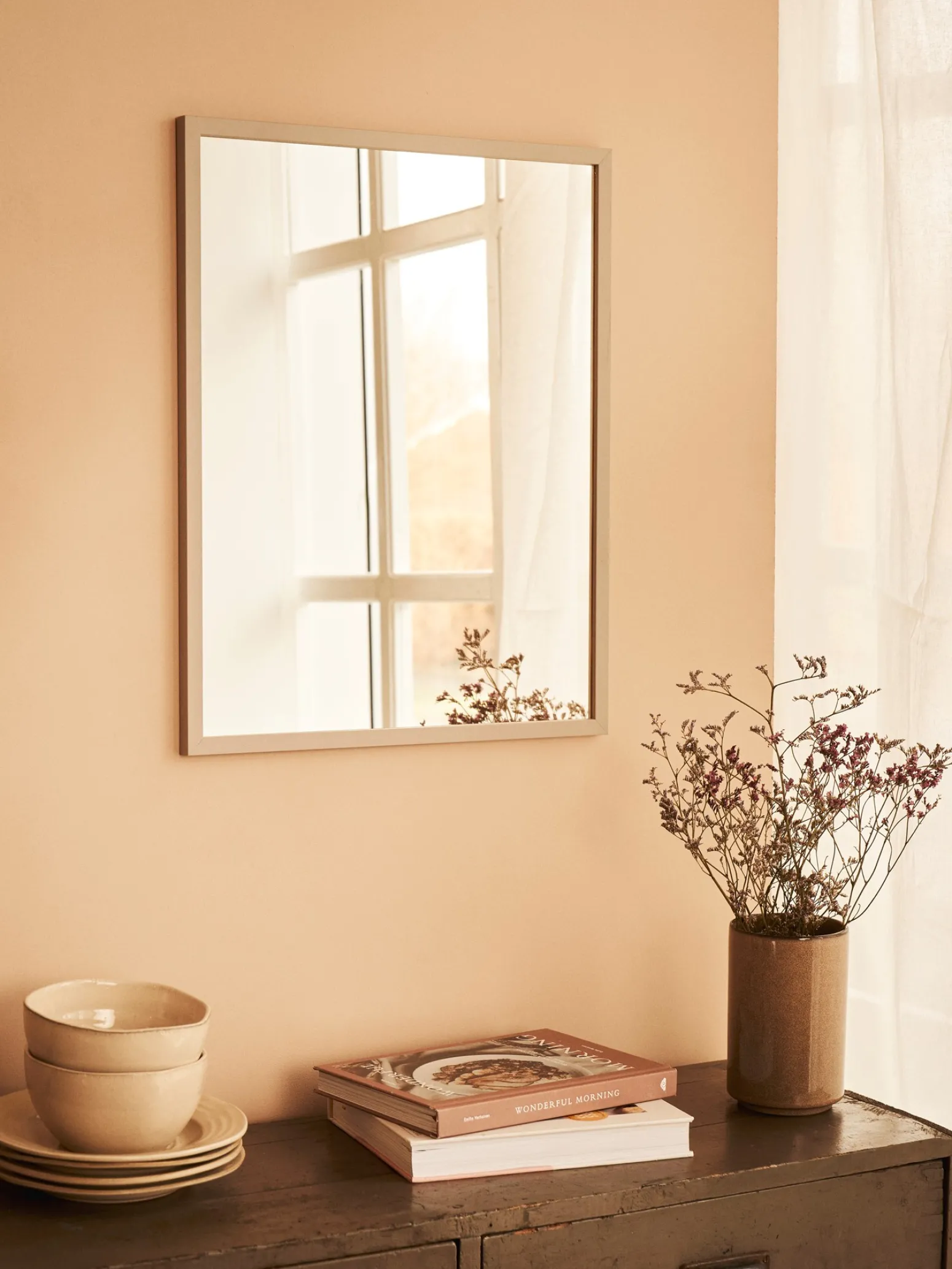 Dieser schöne Spiegel der dänischen Marke Poster & Frame hat einen Holzrahmen und wird in Dänemark hergestellt. Die hochwertigen Materialien vereinen sich zu einer wunderbaren Verbindung von Funktionalität und Design. Die Schwestern weisen darauf hin, dass Holz ein natürliches Material ist und daher der Ausdruck und die Farbe des Rahmens variieren können.