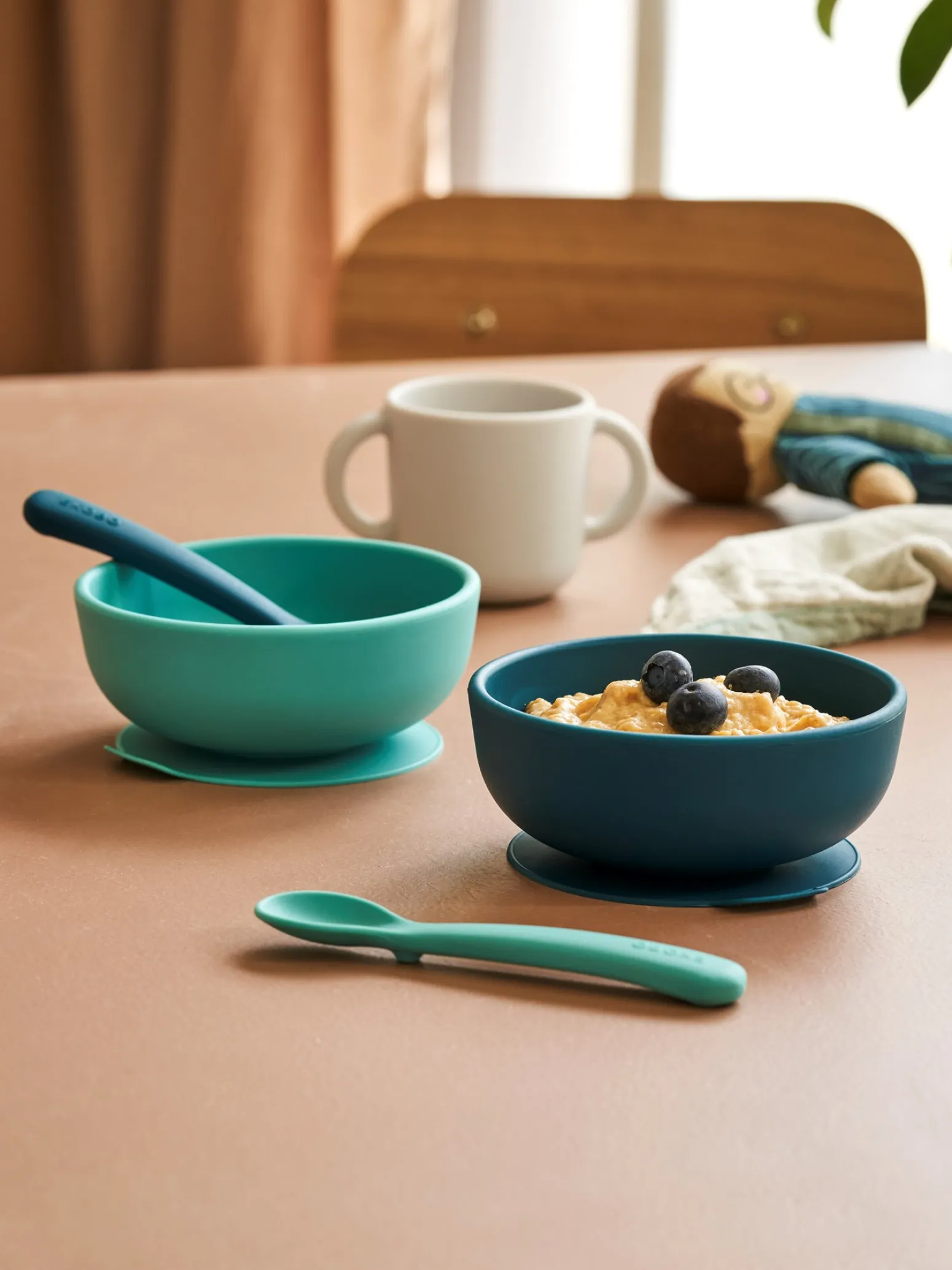 Die Schwestern weisen freundlich darauf hin, dass dieses Produkt nur online erhältlich ist.Diese zwei Saugnapf-Schüsseln von Ekobo fassen 300 ml und bestehen aus hochwertigem, lebensmittelechtem Silikon, das ideal für kleine, ungeschickte Hände ist. Das Produkt ist sowohl spülmaschinen-, mikrowellen-, ofen- als auch gefrierfest (-40 °C bis 230 °C). „Wie praktisch für die Eltern“, schmunzelt Clara.Das entzückende Geschirr von Ekobo ist auf die Essgewohnheiten der Kleinen abgestimmt und das praktische Saugnapfsystem hält die Schüssel fest an fast jeder Oberfläche und verhindert, dass sie auf dem Boden landet, falls Ihr Kind plötzlich etwas zu experimentierfreudig wird.„Stellen Sie sich nur vor, wie diese lieblichen Farben zu fröhlichen Familienmomenten am Esstisch beitragen würden“, fügt Anna begeistert hinzu.