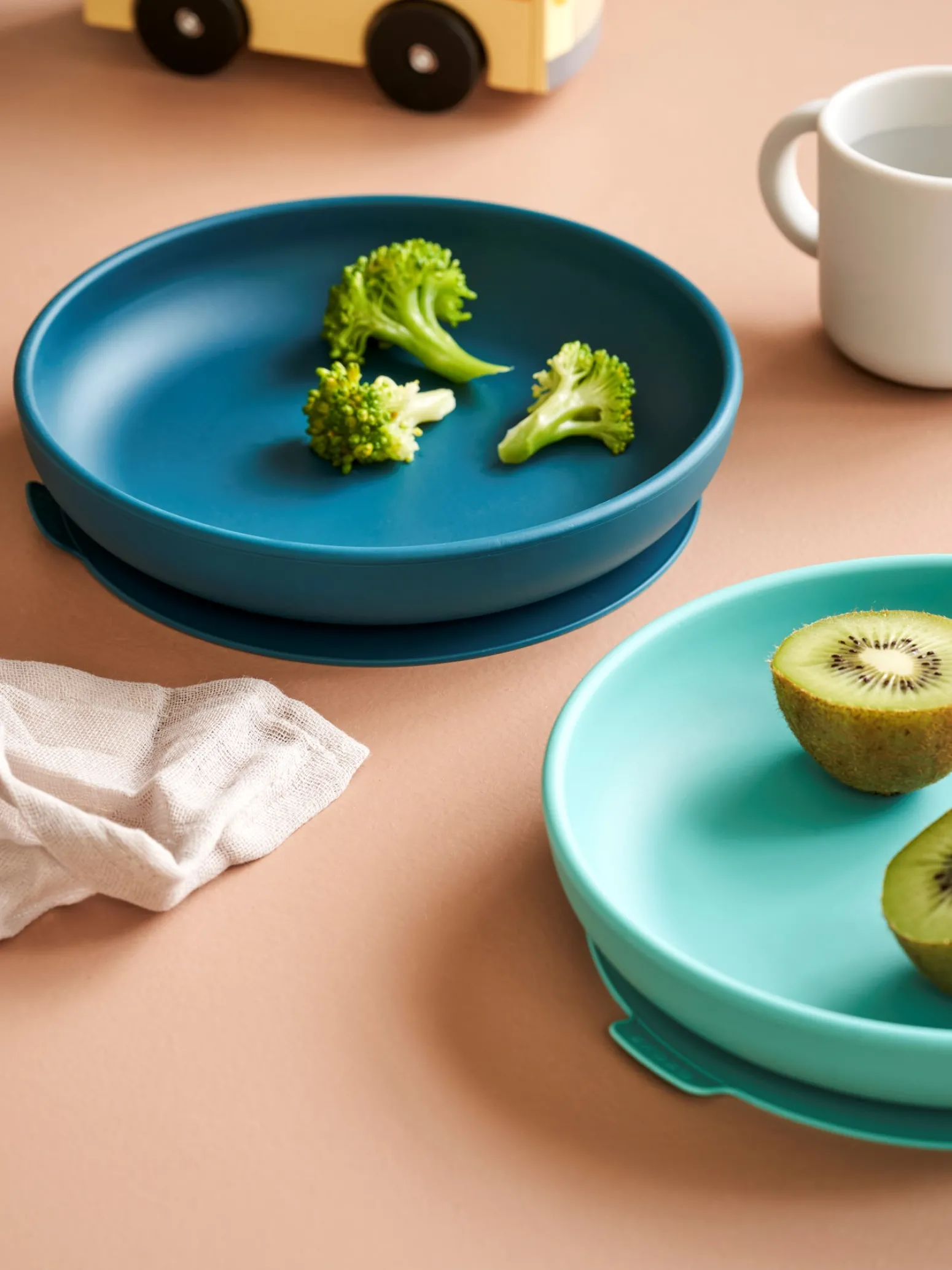 Die Schwestern weisen freundlich darauf hin, dass dieses Produkt nur online erhältlich ist.Diese zwei Saugnapf-Teller von Ekobo haben eine Größe von Ø18 cm und sind aus hochwertigem, lebensmittelechtem Silikon gefertigt, das sich ideal für kleine, ungeschickte Hände eignet. Das Produkt ist sowohl spülmaschinen-, mikrowellen-, ofen- als auch gefrierfest (-40 °C bis 230 °C). „Wie praktisch für die Eltern“, schmunzelt Clara.Das entzückende Geschirr von Ekobo ist auf die Essgewohnheiten der Kleinen abgestimmt und das praktische Saugnapfsystem hält den Teller fest an fast jeder Oberfläche und verhindert, dass er auf dem Boden landet, falls Ihr Kind plötzlich etwas zu experimentierfreudig wird.„Stellen Sie sich nur vor, wie diese lieblichen Farben zu fröhlichen Familienmomenten am Esstisch beitragen würden“, fügt Anna begeistert hinzu.