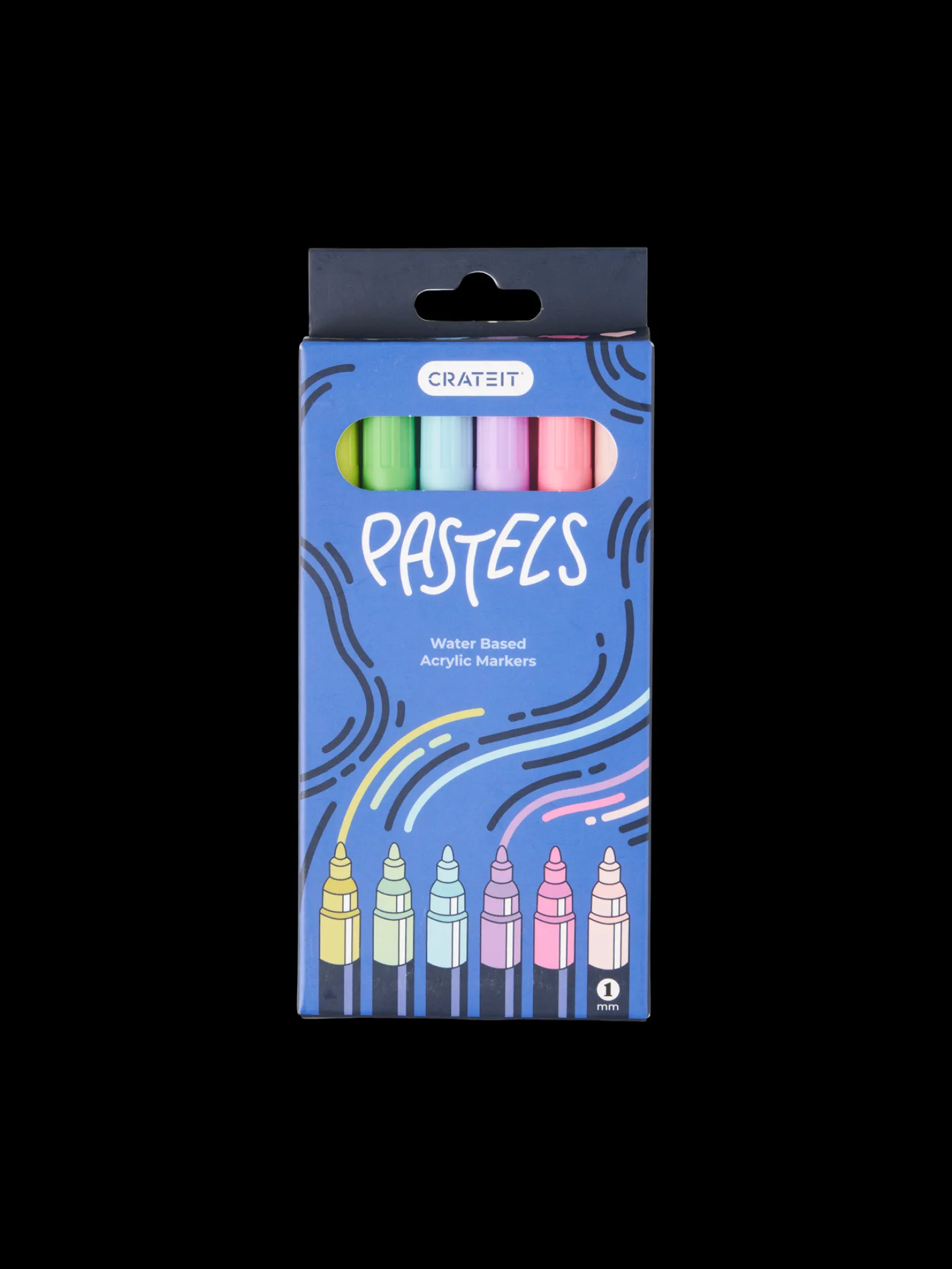 Dieses kleine Set von Acrylmarkern ist von der dänischen Marke Crateit. Diese Marker haben eine 1 mm dicke Spitze und sind auf Wasserbasis. Ein Set enthält 6 Marker in verschiedenen Farben, die sich perfekt zum Verzieren der vielen DIY-Sets eignen.
