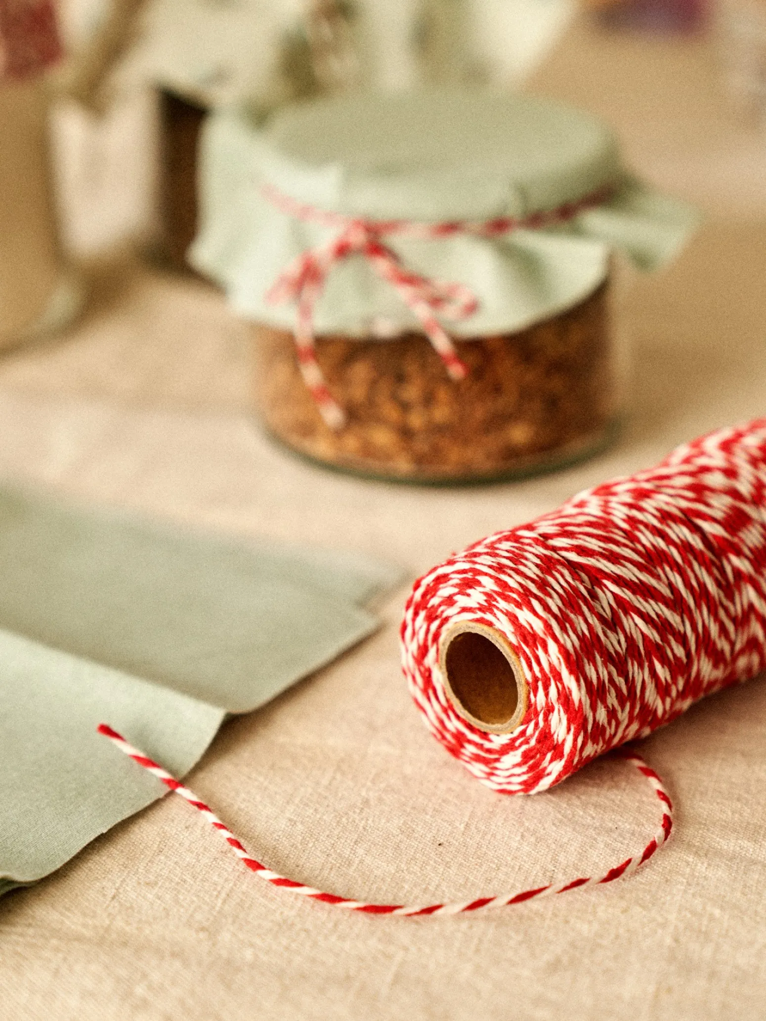 Die Schnur der Schwestern ist aus Baumwolle und misst 92 m.