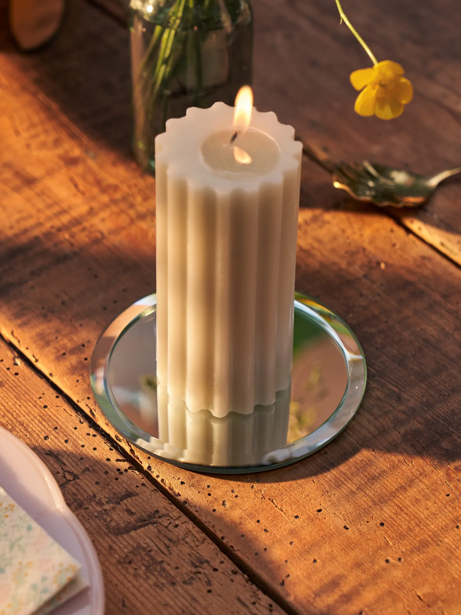 Der Kerzenteller der Schwestern reflektiert das Licht der Kerzen und sorgt für einen schönen, flackernden Effekt.
