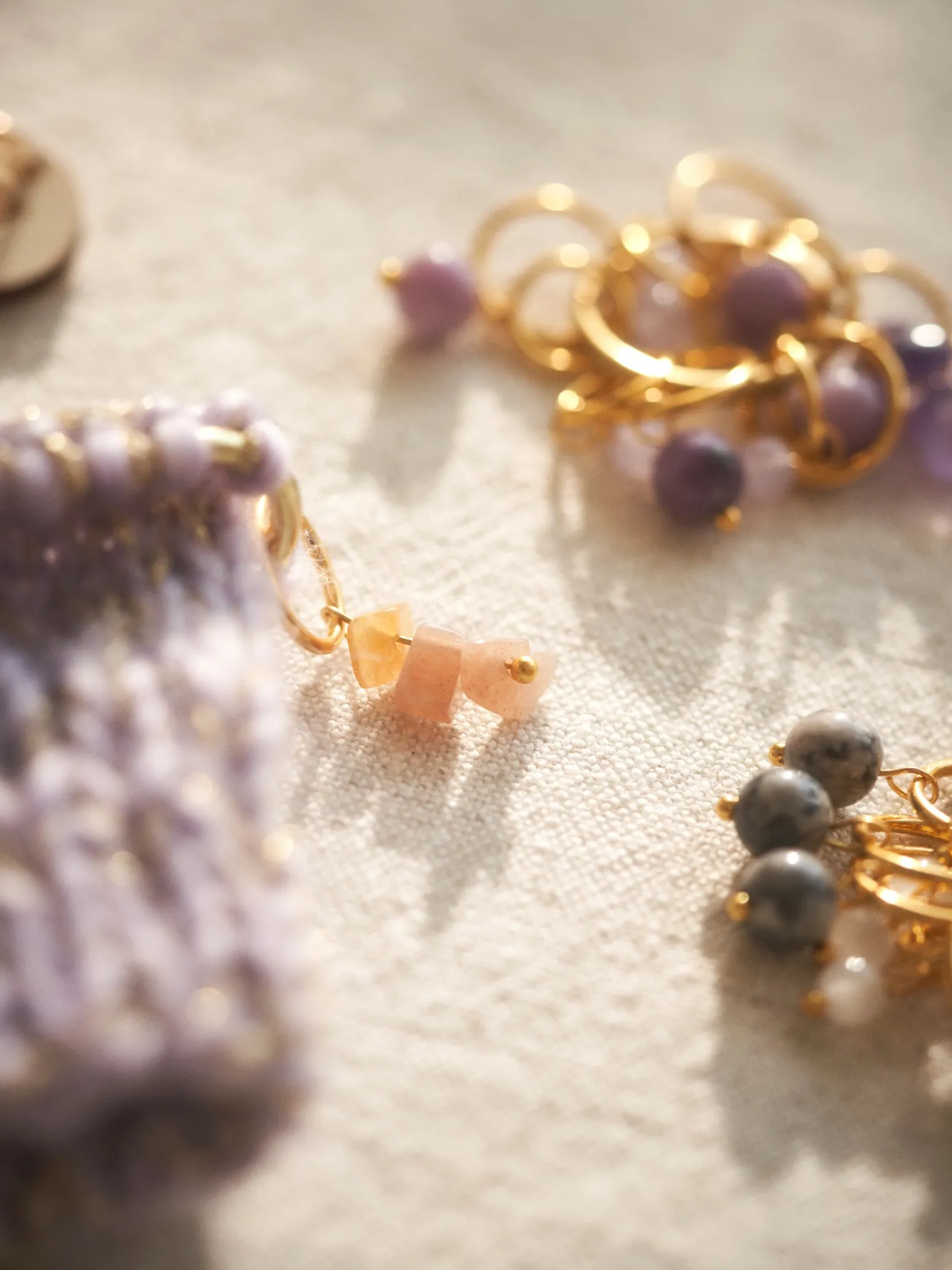 Die Maschenmarkierer der Schwestern bestehen aus Metall und Stein und eine Packung enthält 6 Markierer mit einem Durchmesser von 10 mm und 4 Markierer mit einem Durchmesser von 13 mm.