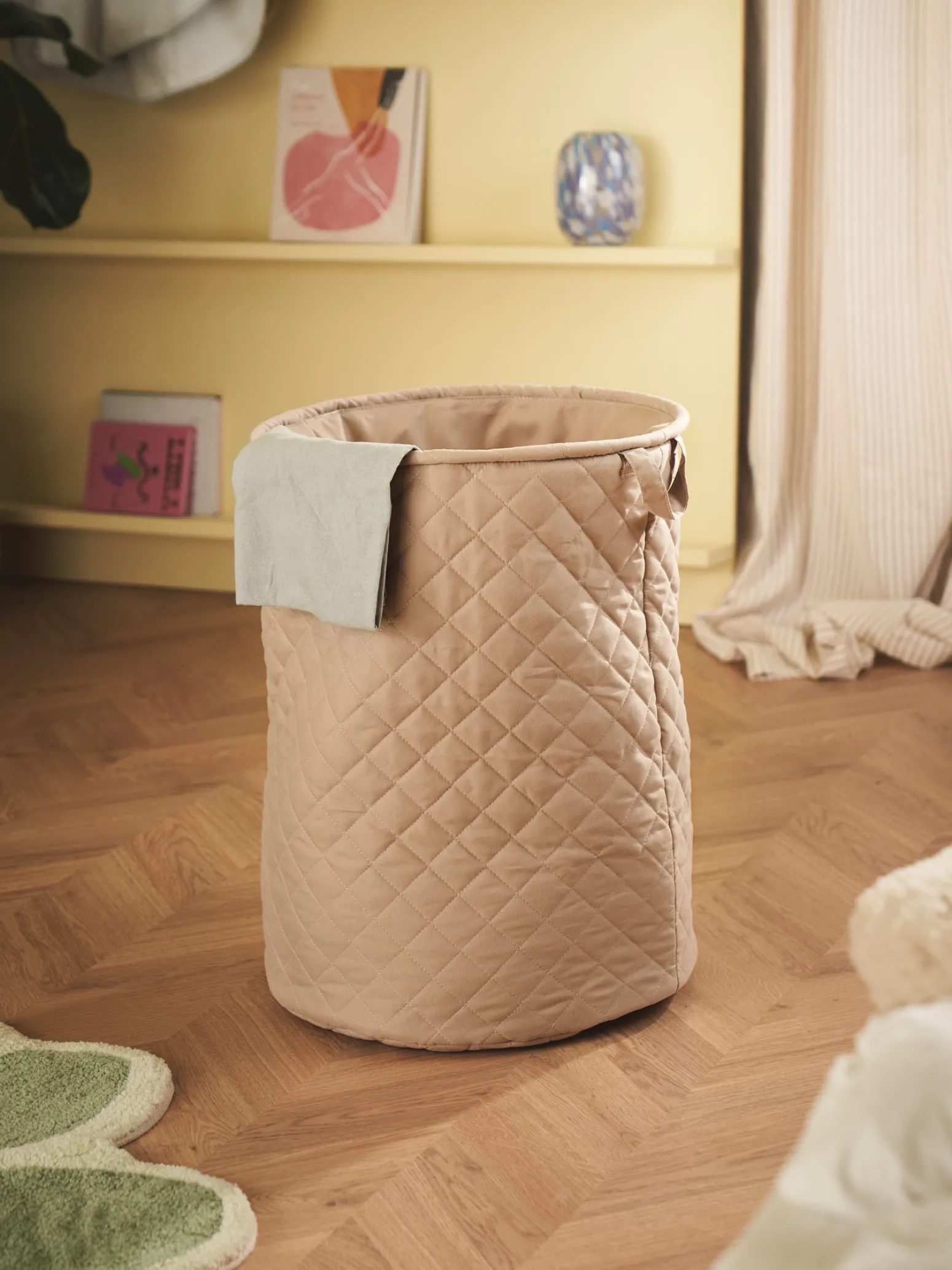 Der gesteppte Wäschekorb der Schwestern besteht aus Baumwolle und misst Ø40 x 55 cm.