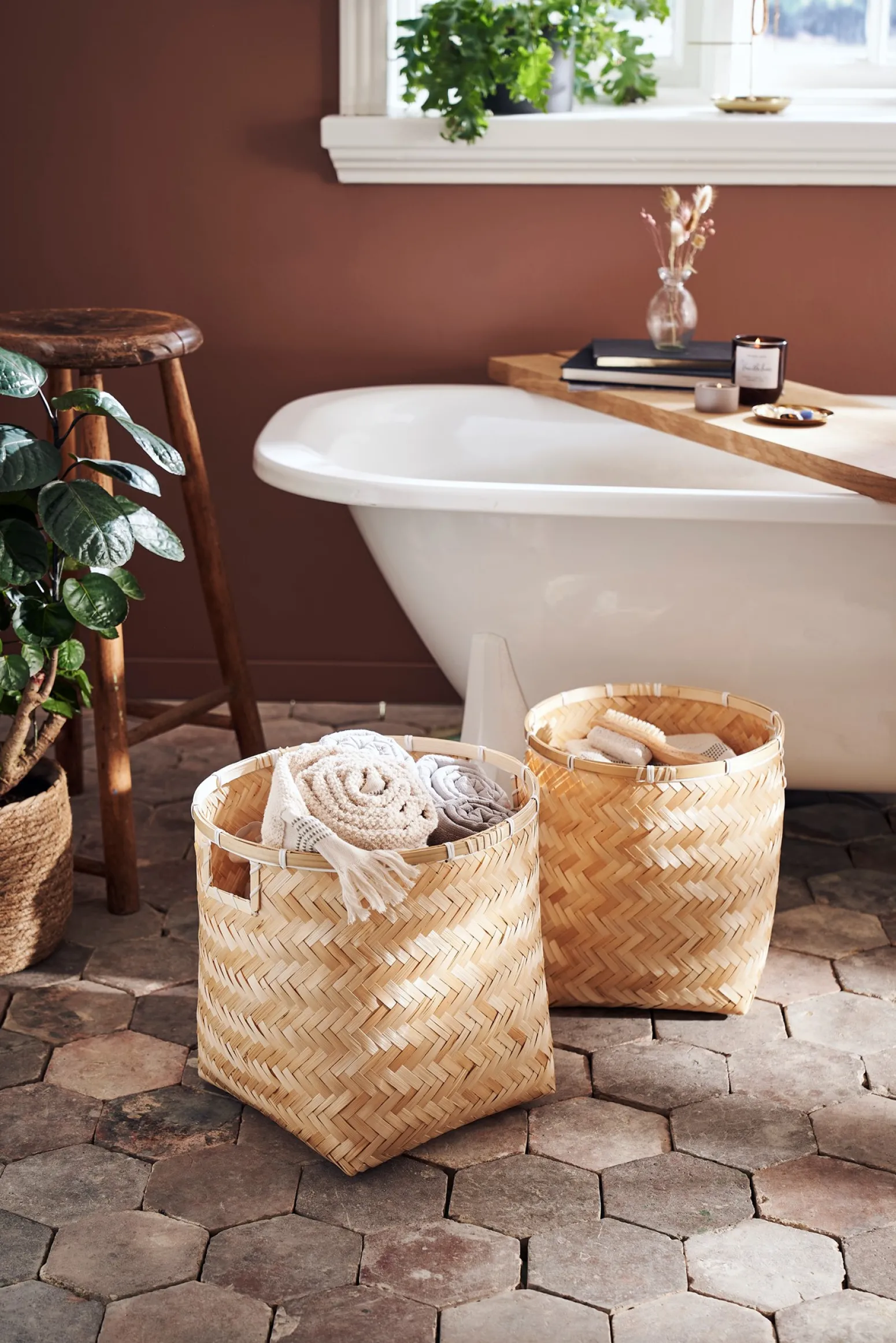 „Praktische Aufbewahrungsmöglichkeiten können ein wunderbar dekoratives Element in Ihrer Einrichtung sein“, sagt Clara, als sie diesen schönen Korb neben ihrem Sessel im Wohnzimmer der Schwestern platziert.Da der Korb aus natürlichen Materialien besteht, weisen die Schwestern freundlich darauf hin, dass er in der Größe leicht variieren kann.
