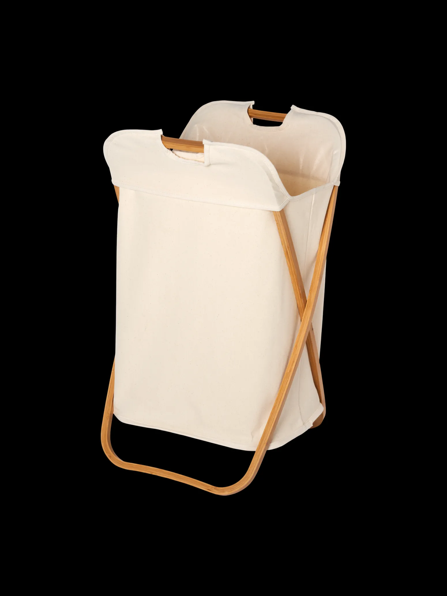 Der Wäschekorb der Schwestern besteht aus FSC®-zertifiziertem Bambus und ist mit Stoff gefüttert.