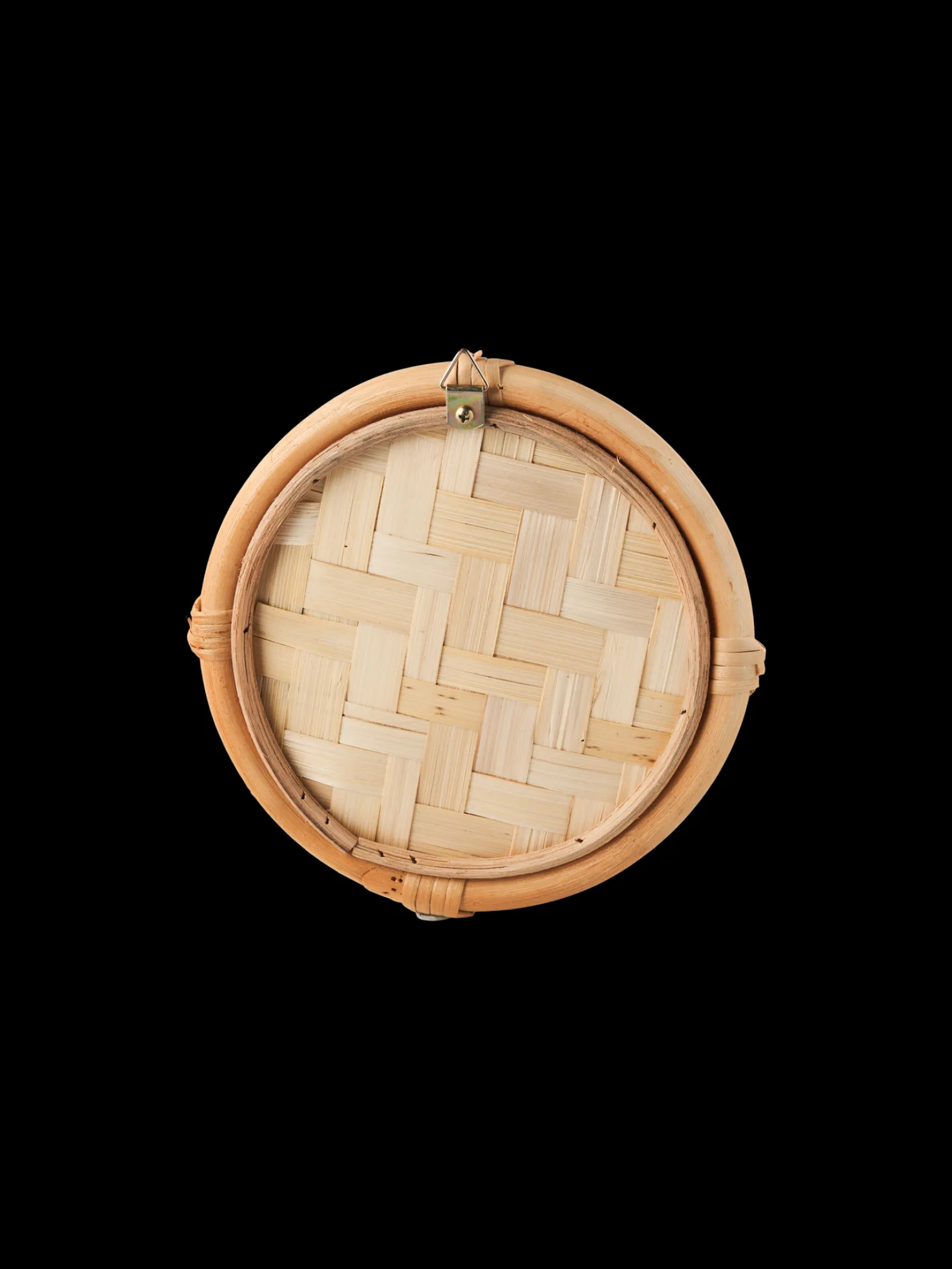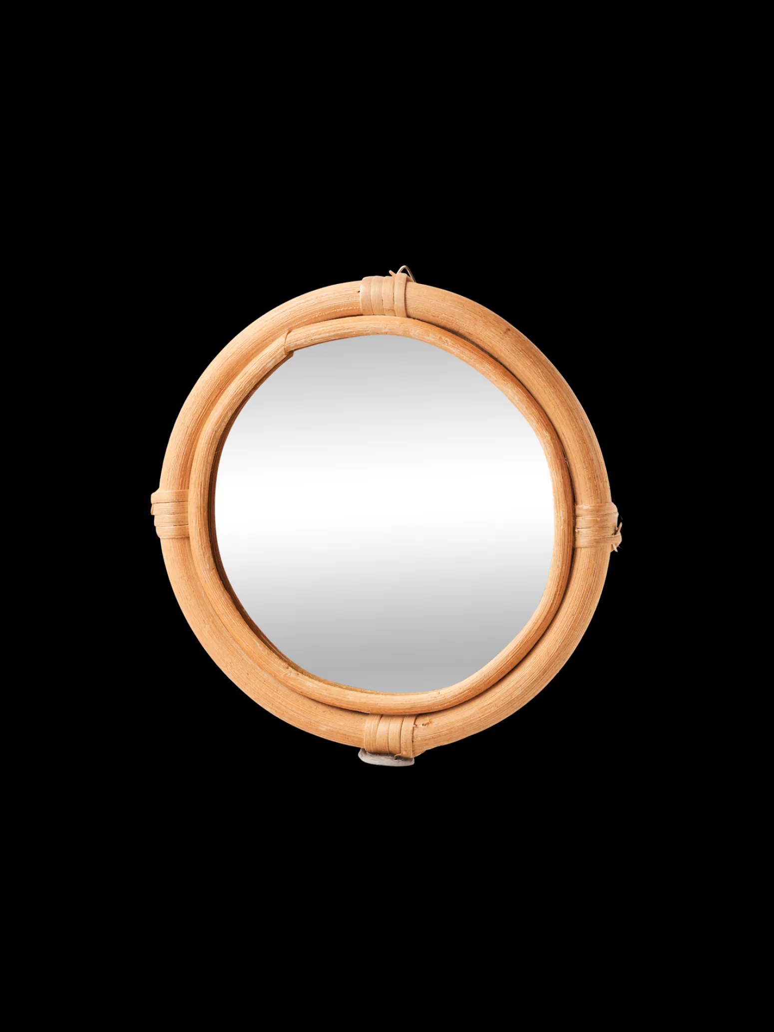 Der Spiegel der Schwestern ist aus Glas und Rattan gefertigt und hat eine FSC®-zertifizierte Bambusrückseite.
