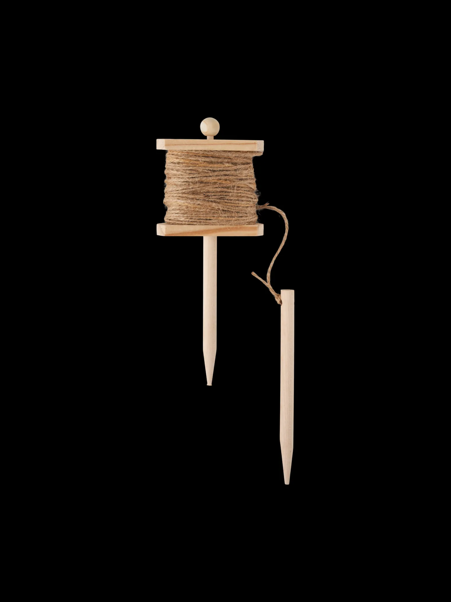 Die Schnur besteht aus Jute und ist um eine Halterung aus 100 % FSC®-zertifiziertem Kiefernholz gewickelt.