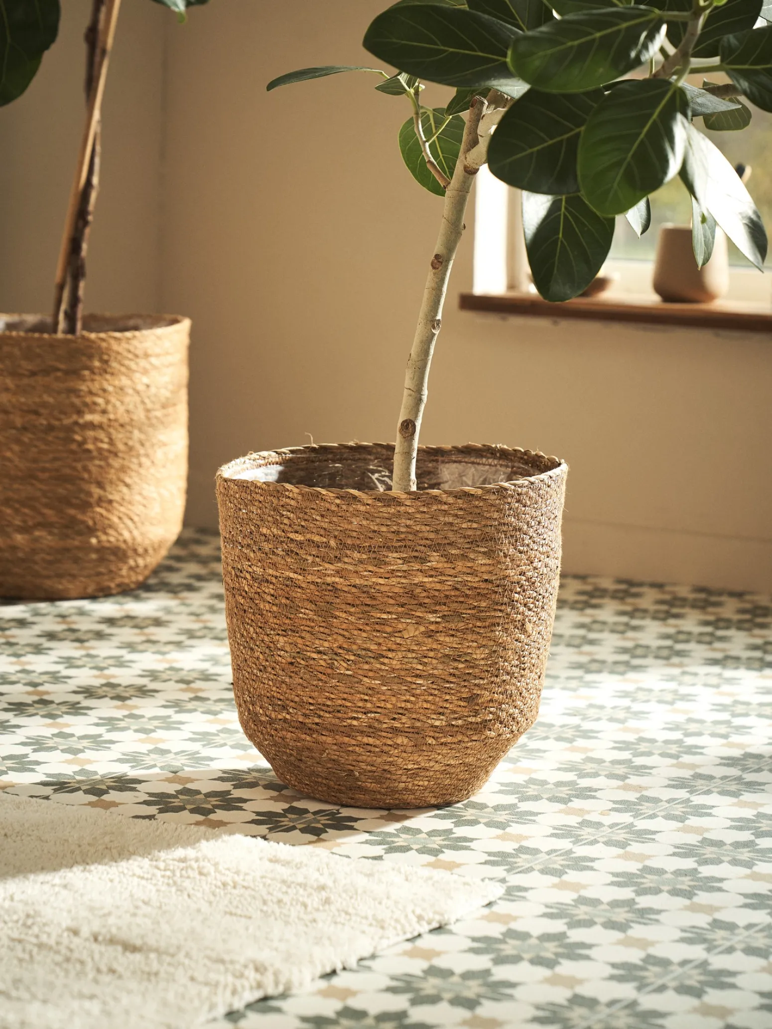 Der Übertopf der Schwestern ist praktischerweise mit Kunststoff ausgekleidet. Er hat einen Durchmesser von 28 cm oben und einen Durchmesser von 17 cm unten.